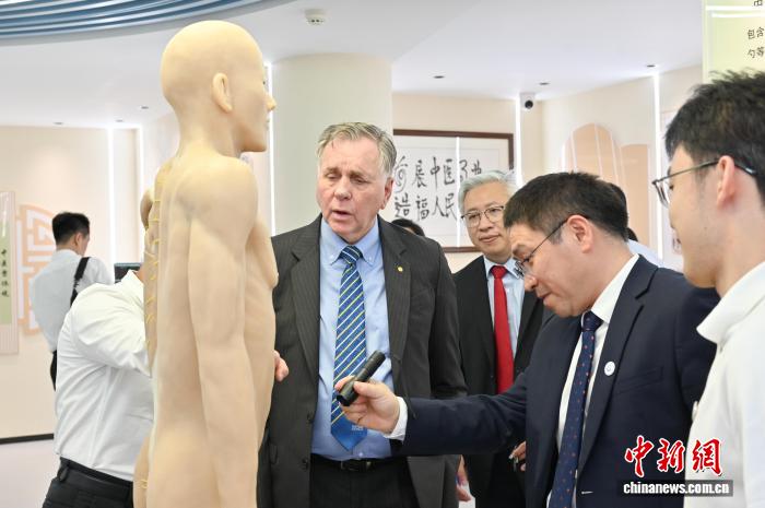 图为巴里·马歇我正在底子医教院观光。中新社记者 旧楚白 摄